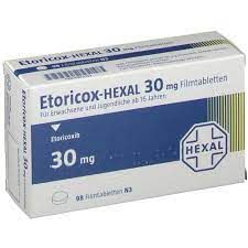 أقراص مغلفة بغشاء تحتوي على إيتوريكوكسيب "دواء غير ستيرويدي مضاد للالتهابات": علاج الألم الحاد بعد إجراءات الأسنان البسيطة والجراحة النسائية، والألم المرتبط بعسر الطمث الأولي، وعلاج الألم والالتهاب في هشاشة العظام، والتهاب المفاصل الروماتويدي، والتهاب الفقار اللاصق، والتهاب المفاصل النقرسي الحاد.