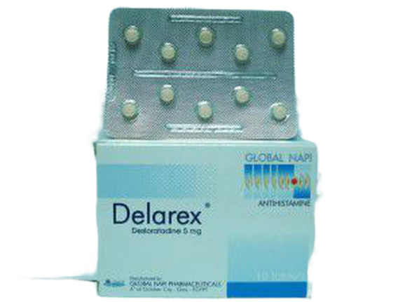 أقراص مغلفة بغشاء تحتوي على ٥ ملغ من ديسلوراتادين "الجيل الثاني"، ويُستخدم كمضاد للهيستامين ومضاد للحساسية في حالات التهاب الجلد التحسسي، والتهاب الأنف التحسسي، والشرى المزمن مجهول السبب. الجرعة: الأطفال من ٦ إلى ١١ شهرًا: ١ ملغ مرة واحدة يوميًا. الأطفال من ٥ سنوات فأقل: ١.٢٥ ملغ مرة واحدة يوميًا. الأطفال من ٦ إلى ١١ سنة فأقل: ٢.٥ ملغ مرة واحدة يوميًا. الأطفال من ١٢ سنة فأكثر والمراهقون: ٥ ملغ مرة واحدة يوميًا.