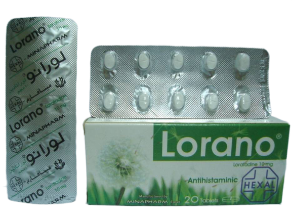 أقراص تحتوي على ١٠ ملغ من لوراتادين "الجيل الثاني"، تُستخدم كمضاد للهيستامين ومضاد للحساسية في حالات التهاب الجلد التحسسي، والتهاب الأنف التحسسي، والشرى المزمن مجهول السبب. الجرعة: الأطفال من عمر ٦ إلى ١١ شهرًا: ١ ملغ مرة واحدة يوميًا. الأطفال من عمر ٥ سنوات فما فوق: ١.٢٥ ملغ مرة واحدة يوميًا. الأطفال من عمر ٦ إلى ١١ سنة فما فوق: ٢.٥ ملغ مرة واحدة يوميًا. الأطفال من عمر ١٢ سنة فما فوق والمراهقون: ٥ ملغ مرة واحدة يوميًا.