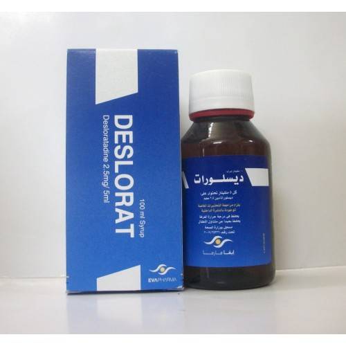 شراب يحتوي على ديسلوراتادين بتركيز 0.5 ملغ/مل "الجيل الثاني". يُستخدم كمضاد للهيستامين ومضاد للحساسية في حالات التهاب الجلد التحسسي، والتهاب الأنف التحسسي، والشرى المزمن مجهول السبب. الجرعة: الأطفال من عمر 6 إلى 11 شهرًا: 1 ​​ملغ مرة واحدة يوميًا. الأطفال من عمر 5 سنوات إلى 11 سنة: 1.25 ملغ مرة واحدة يوميًا. الأطفال من عمر 6 إلى 11 سنة: 2.5 ملغ مرة واحدة يوميًا. الأطفال من عمر 12 سنة فما فوق والمراهقون: 5 ملغ مرة واحدة يوميًا.