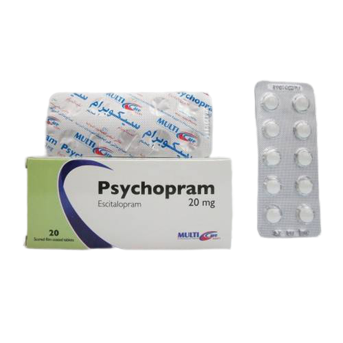 PSYCHOPRAM 20MG 20TAB: يحتوي على المادة الفعالة إسيتالوبرام أوكسالات ويستخدم لعلاج الاكتئاب واضطرابات القلق وغيرها.