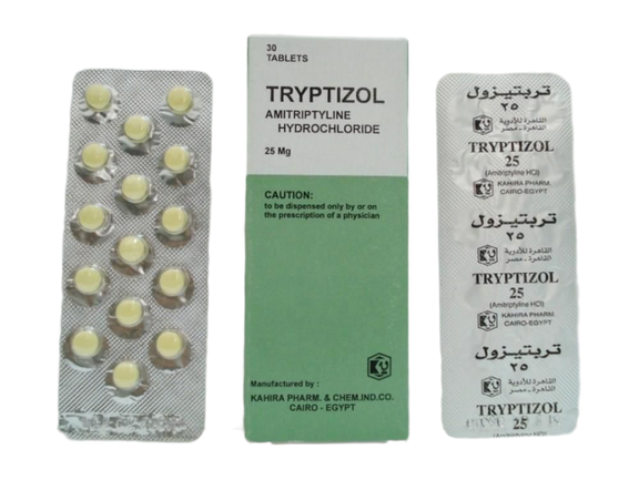تحتوي الأقراص على 25 ملغ من أميتريبتيلين "مضاد اكتئاب ثلاثي الحلقات" يستخدم في المقام الأول لعلاج اضطراب الاكتئاب الشديد ومجموعة متنوعة من متلازمات الألم من الألم العصبي إلى الألم العضلي الليفي إلى الصداع النصفي والصداع التوتري، ونظرًا لتكرار وشدة الآثار الجانبية، يُعتبر أميتريبتيلين عمومًا علاجًا من الخط الثاني لهذه المؤشرات.
