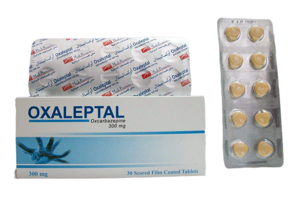 أقراص مغلفة بغشاء تحتوي على 300 ملغ من أوكسكاربازيبين تستخدم في علاج النوبات الجزئية.