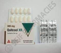 أقراص ممتدة المفعول تحتوي على 300 ملغ من كويتيابين، وهو مضاد ذهان من الجيل الثاني (غير نمطي)، يُستخدم لعلاج الاضطراب ثنائي القطب، والاكتئاب الشديد، والفصام. يُستخدم تحت إشراف طبي فقط.