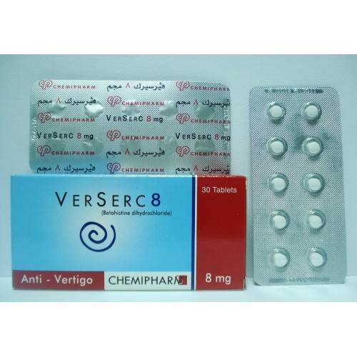 فيرسرك 8 ملجم 30 قرص: يحتوي على المادة الفعالة بيتاهستين ديهيدروكلوريد ويستخدم لعلاج الدوار.