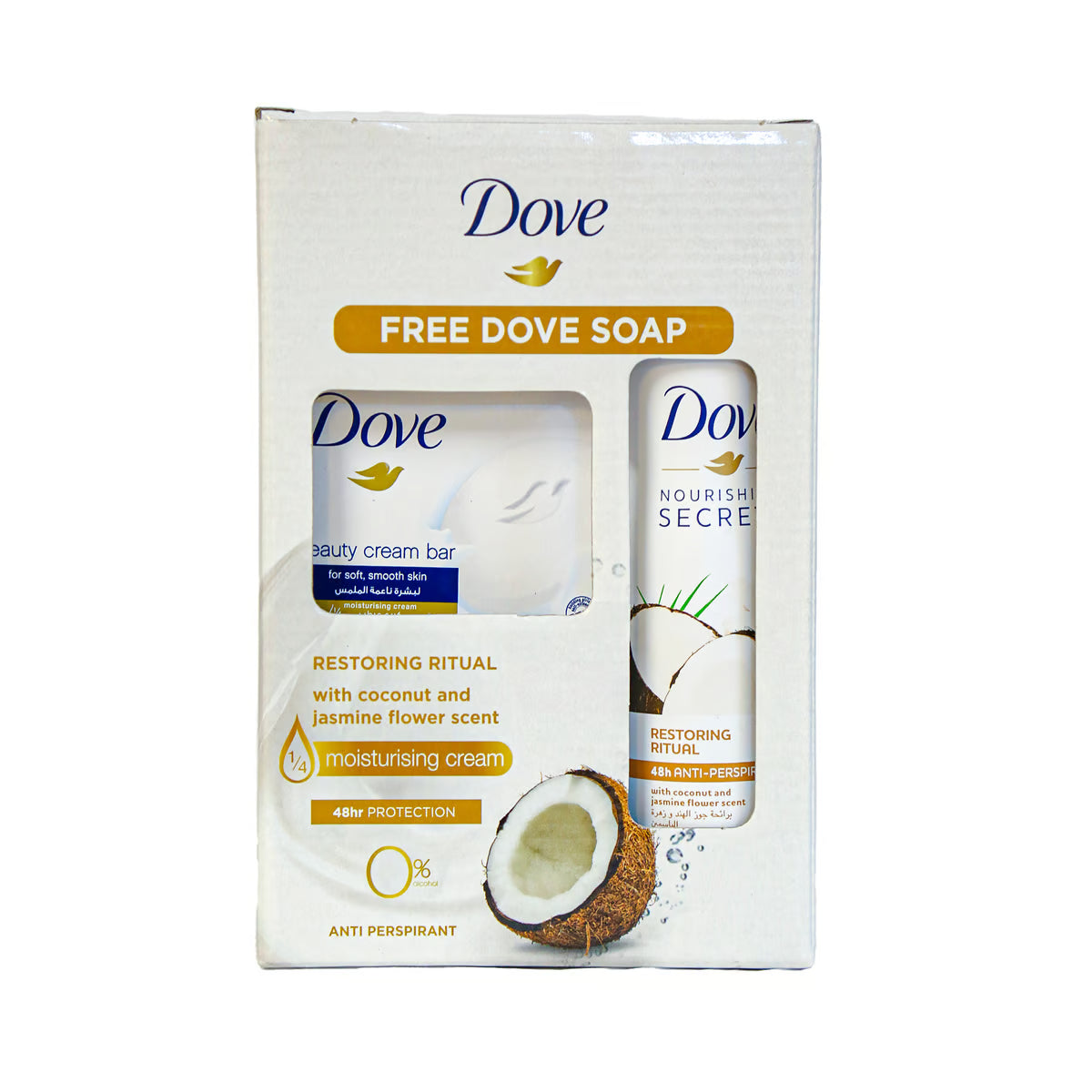 مزيل عرق دوف بخاخ الجسم لاستعادة طقوسك 150 مل + قطعة صابون بزيت طبيعي 100 جرام