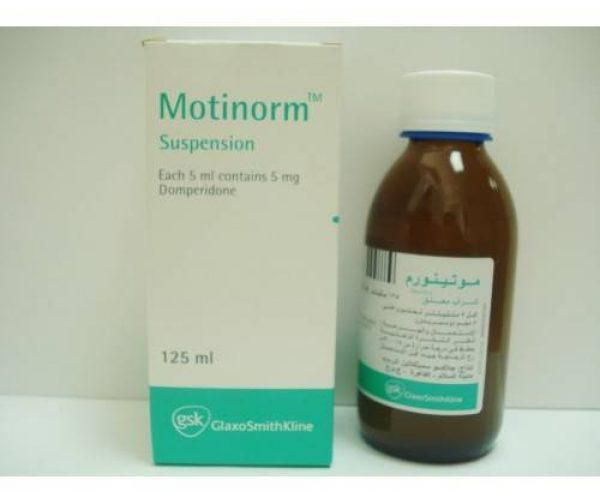 موتينورم معلق ١٢٥ مل: موتينورم دواء يحتوي على دومبيريدون، وهو مضاد للقيء يُستخدم لعلاج الغثيان والقيء الناتج عن بعض الأدوية أو الحالات المرضية، مثل مرض باركنسون أو ارتجاع المريء. يتوفر على شكل معلق بحجم ١٢٥ مل.