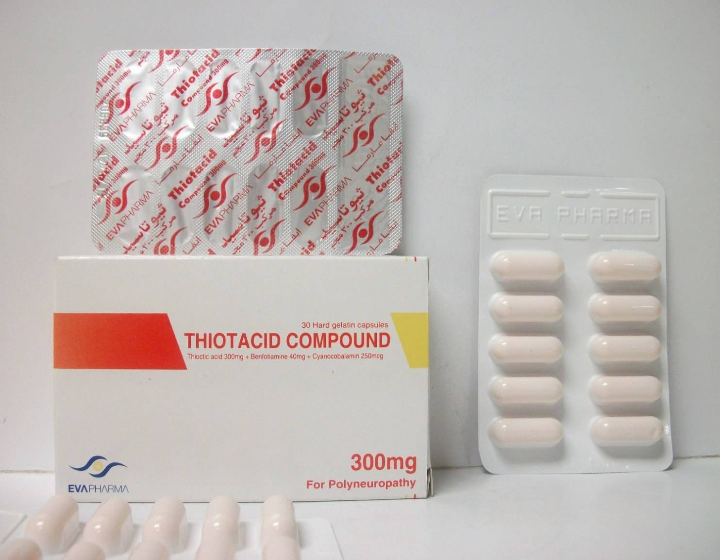 مركب ثيوتاسيد 600 ملجم 30 قرصًا: يحتوي هذا الدواء على المادة الفعالة حمض ألفا ليبويك ويستخدم كمكمل مضاد للأكسدة.