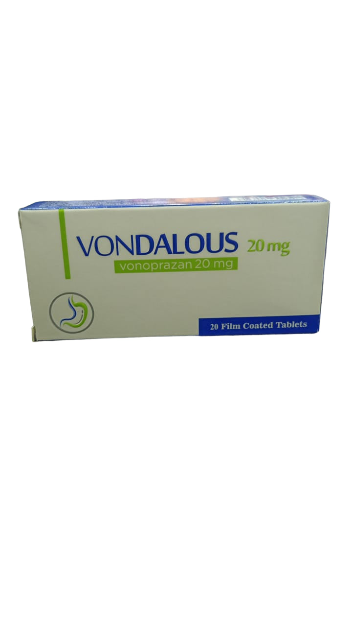 تُستخدم أقراص فوندالوس لعلاج الحالات المرتبطة بزيادة حموضة المعدة، مثل مرض الارتجاع المعدي المريئي (GERD). تحتوي كل عبوة على 20 قرصًا مغلفًا بغشاء رقيق، بتركيز 20 ملغ من المادة الفعالة، مما يُخفف من الانزعاج الناتج عن الحموضة.