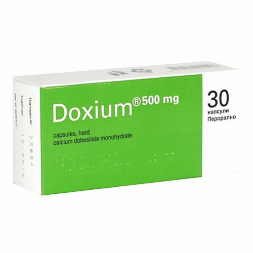 دوكسيوم ٥٠٠ ملغ ٣٠ كبسولة ###: هذا منتج يحتوي على دوبيسيلات الكالسيوم، وهو دواء يُحسّن الدورة الدموية ويُقلل من هشاشة الشعيرات الدموية. يُستخدم لعلاج القصور الوريدي المزمن، واعتلال الشبكية السكري، والبواسير، والدوالي. يُؤخذ عادةً مرة أو مرتين يوميًا مع الوجبات.