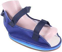 يحل الحذاء الجبيري محل وظيفة الحذاء العادي عندما يعاني المريض من إصابة في القدم نعل مائل وشبه مرن لتوفير الراحة وخفة الوزن