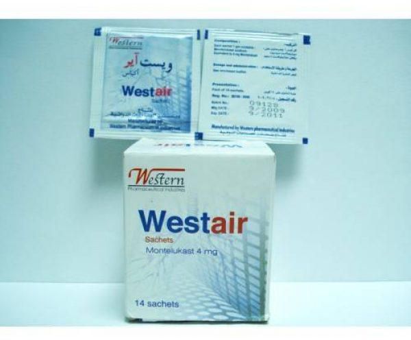 ويستاير ٤ ملغ ١٤ كيسًا: ويستاير دواء يحتوي على مونتيلوكاست، وهو مضاد لمستقبلات الليكوترين يُستخدم في علاج الربو والتهاب الأنف التحسسي. يتوفر في علبة تحتوي على ١٤ كيسًا، يحتوي كل كيس على ٤ ملغ من مونتيلوكاست ١.