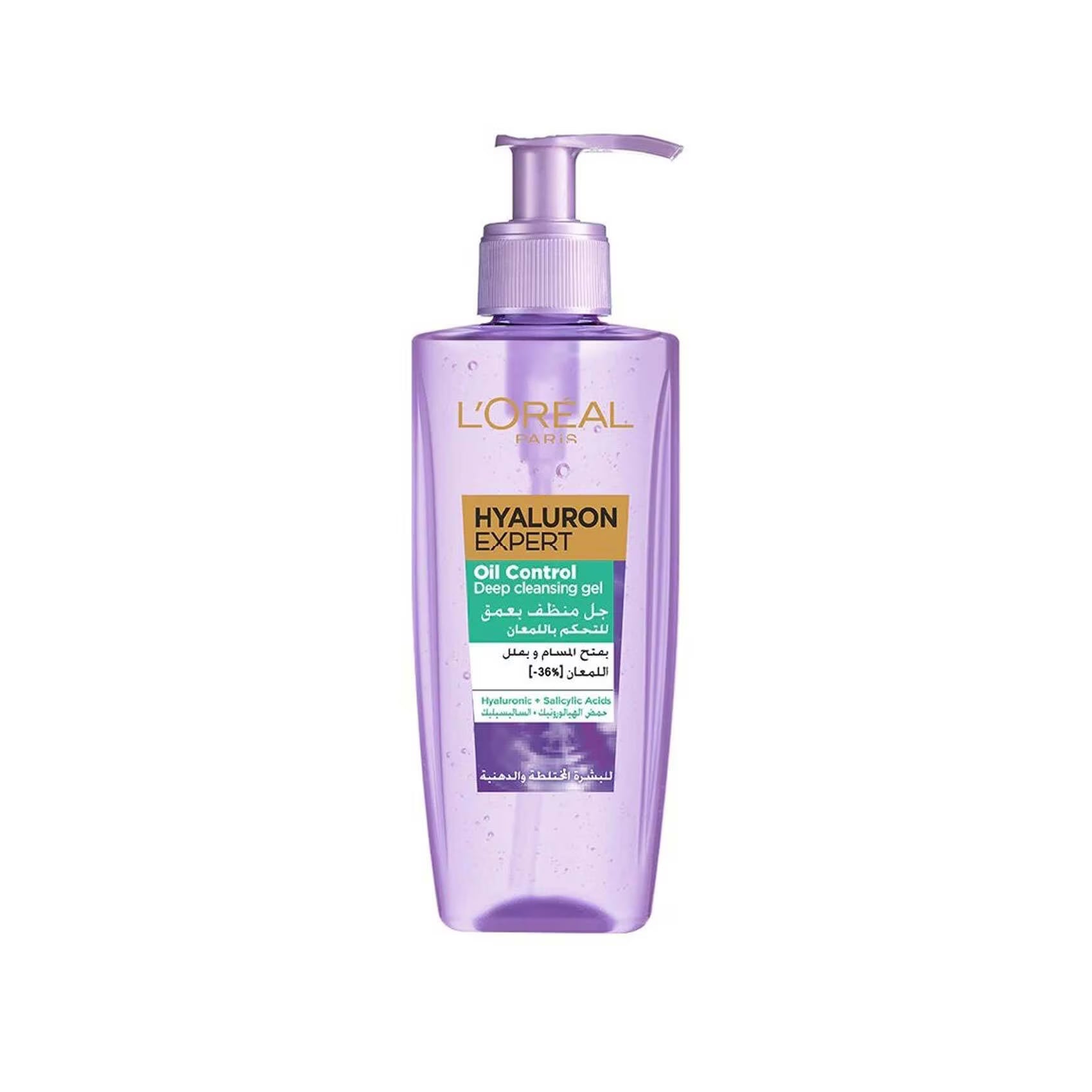 تقدم لوريال باريس جل Hyaluron Expert للتنظيف العميق والتحكم في الزيوت، المصنوع من حمض الهيالورونيك، المعروف بخصائصه المنشطة في العناية المضادة للشيخوخة، وحمض الساليسيليك، وهو مكون قوي معروف بإزالة الزيوت وتنقية البشرة.