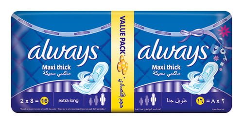 فوط صحية ليلية ماكسي ناعمة للغاية من ألويز، 16 قطعة، مقاس 16-16