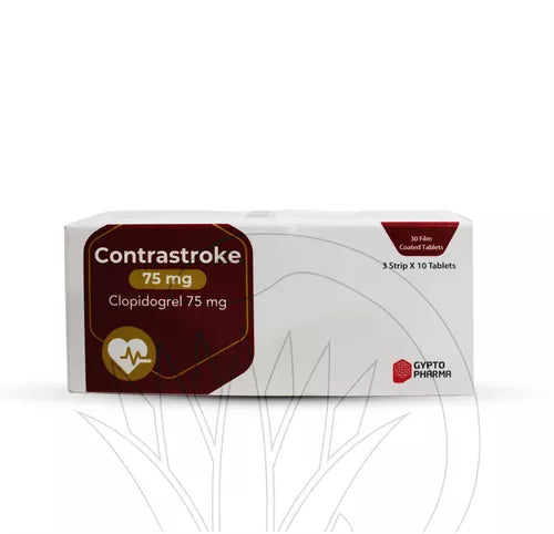 أقراص تحتوي على 75 ملغ كلوبيدوجريل "عامل مضاد للصفيحات" يستخدم لتقليل معدل الإصابة بنوبة قلبية وسكتة دماغية لدى المرضى الذين لديهم تاريخ من احتشاء عضلة القلب الأخير أو السكتة الدماغية الأخيرة أو مرض تصلب الشرايين الطرفية.