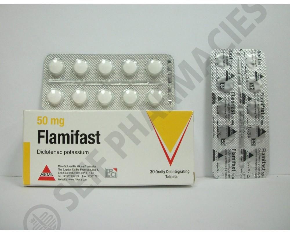 Orally Disintegrating Tablets Contain Diclofenac Potassium 50 mg Used As Analgesic & Anti-Inflammatory In Case Of Acute Pain Inflammation , Osteoarthritis , Ankylosing Spondylitis & Rheumatoid Arthritis.