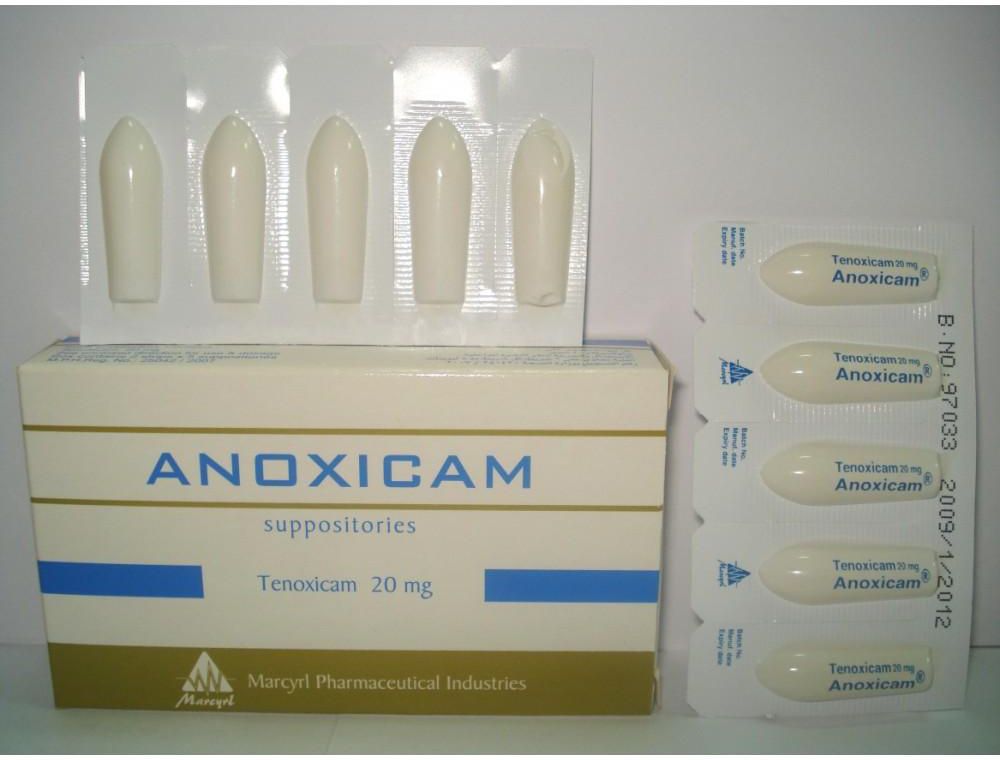 Suppositories Contain Tenoxicam 20 mg " Nonsteroidal Anti-inflammatory Drug (NSAID)"Used As Anti-Rheumatic & Anti-Inflammatory Used In Symptomatic Treatment Of Ankylosing Spondylitis , Symptomatic Treatment Of Extra-Articular Inflammation , Symptomatic Treatment Of Osteoarthritis & Symptomatic Treatment Of Rheumatoid Arthritis. Administration : With Or After A Meal, Preferably At The Same Time Each Day. Contraindications : Patients Who Have Experienced Asthma, Active Peptic Ulcer Or Active GI Inflammatory Diseases.