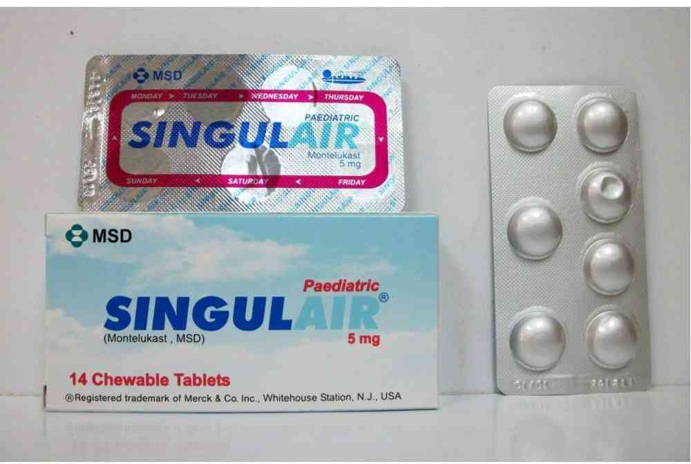 Chewable Tablets Contain Montelukast 5 mg" Leukotriene Receptor Antagonist" Used In Relief Of Symptoms Of Seasonal Allergic Rhinitis , Prophylaxis & Chronic Treatment Of Asthma Prevention Of Exercise-Induced Bronchoconstriction. Note For Asthma, Administer Dose In The Evening. Patients With Allergic Rhinitis May Administe (Morning Or Evening). The Missed Dose Should Be Skipped & Therapy Resumed At Next Scheduled Doses. Two Doses Should Not Be Administered At The Same Time To Catch Up.