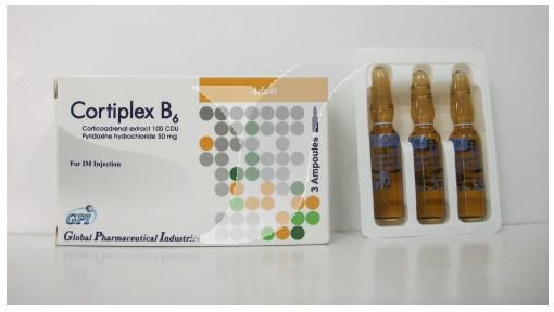 Ampoules For Intramuscular Injection Contain Corticoadrenal Extract 300 mcg & Vitamin B6 50 mg Used As Anti-Emetic.