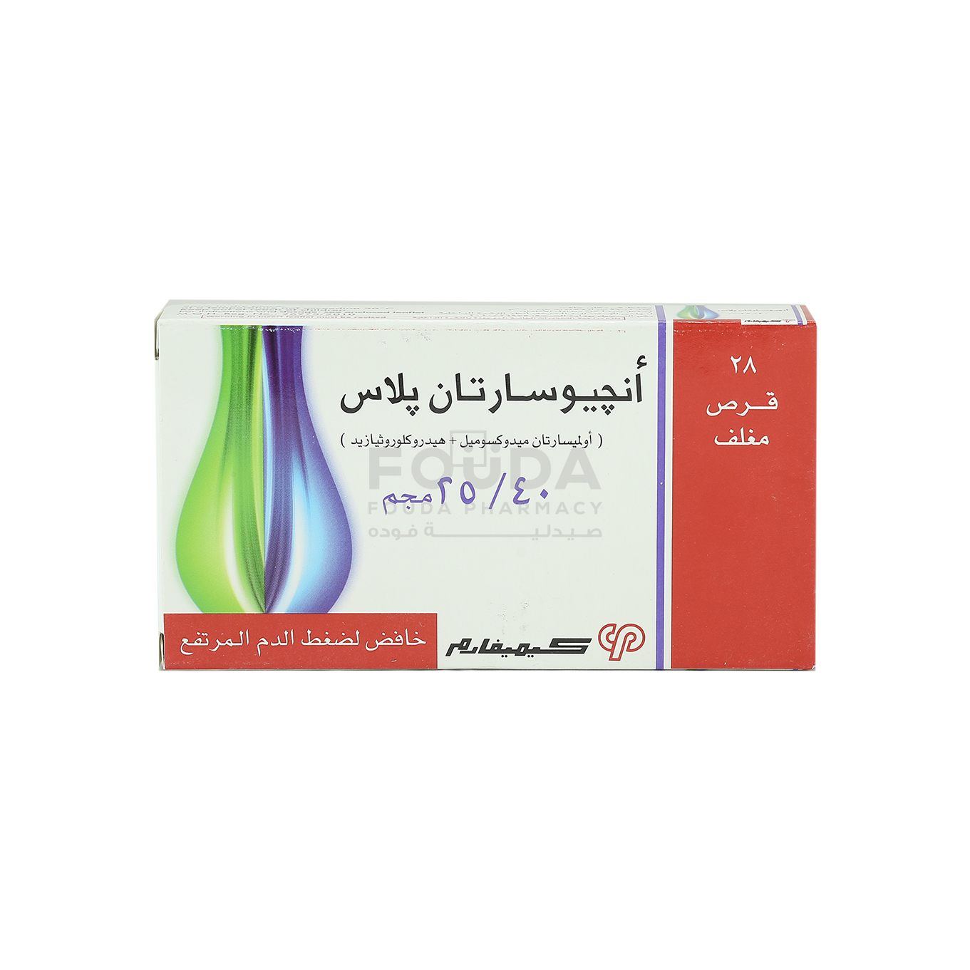 ANGIOSARTAN PLUS 40/25 MG 28 TAB: Each tablet contains 40mg of Telmisartan and 25mg of Hydrochlorothiazide. It is used to treat high blood pressure .