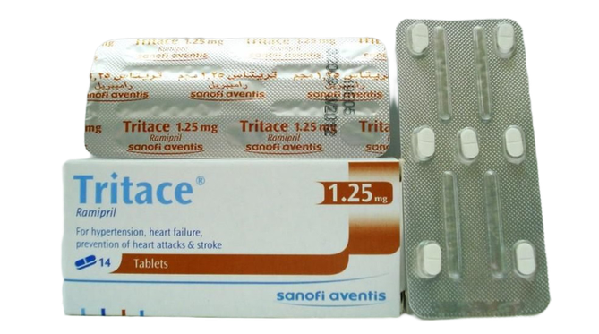 TRITACE 1.25 MG 14 TAB ##: Tritace tablets contain Ramipril IP equivalent to Ramipril anhydrous USP1.25 mg as an active ingredient and are used to treat high blood pressure (hypertension), heart failure, myocardial infarction, and diabetic nephropathy .