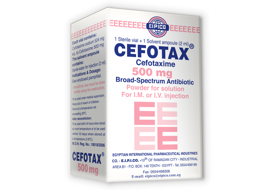 Vial Contains Cefotaxime 1 gm ( Third Generation Cephalosporin Parenteral Anti-Biotic) Used For Treatment Of Bacteremia/Septicemia ,Bone Or Joint Bacterial Infections , CNS Bacterial Infections , Genitourinary Bacterial Infections , Gynecologic Bacterial Infections ,Intra-Abdominal Bacterial Infections , Lower Respiratory Tract Bacterial Infections , Skin Structure Bacterial Infections & Surgical Prophylaxis: Reduce The Incidence Of Certain Infections In Patients Undergoing Surgical Procedures. **Administration: Intramuscular. **Preparation : Reconstitute Vial With Sterile Water For Injection :- *Vial 500 mg >> Reconstitute With 2 ml Of Sterile Water For Injection Or 1 % Lidocaine. *Vial 0.5 gm >> Reconstitute With 3 ml Of Sterile Water For Injection Or 1 % Lidocaine. *Vial 2 gm >> Reconstitute With 5 ml Of Sterile Water For Injection Or 1 % Lidocaine. *Lidocaine Contraindicated For Intravenous Injection. * Note; Reconstituted Solution Is Stable For 12 To 24 Hours When Refrigerated. **Administration: Intravenous. **Preparation: Reconstitute Vial With ≥10 ml Sterile Water For Injection. * Resulting In Concentration:- *Vial 500 mg Final Concentration Is >> 50 mg/ml. *Vial 1 gm Final Concentration Is >>95 mg/ml. *Vial 2 gm Final Concentration Is >>180 mg/ml. **Shake To Dissolve. May Be Further Diluted Up To 1000 ml With Normal Saline, Dextrose 5 %, Dextrose 10%, Dextrose 5% Normal Saline, Or Lactated Ringer. Note; Reconstituted Solution In Normal Saline Is Stable For 24 Hours At Room Temperature, 5 Days When Refrigerated.