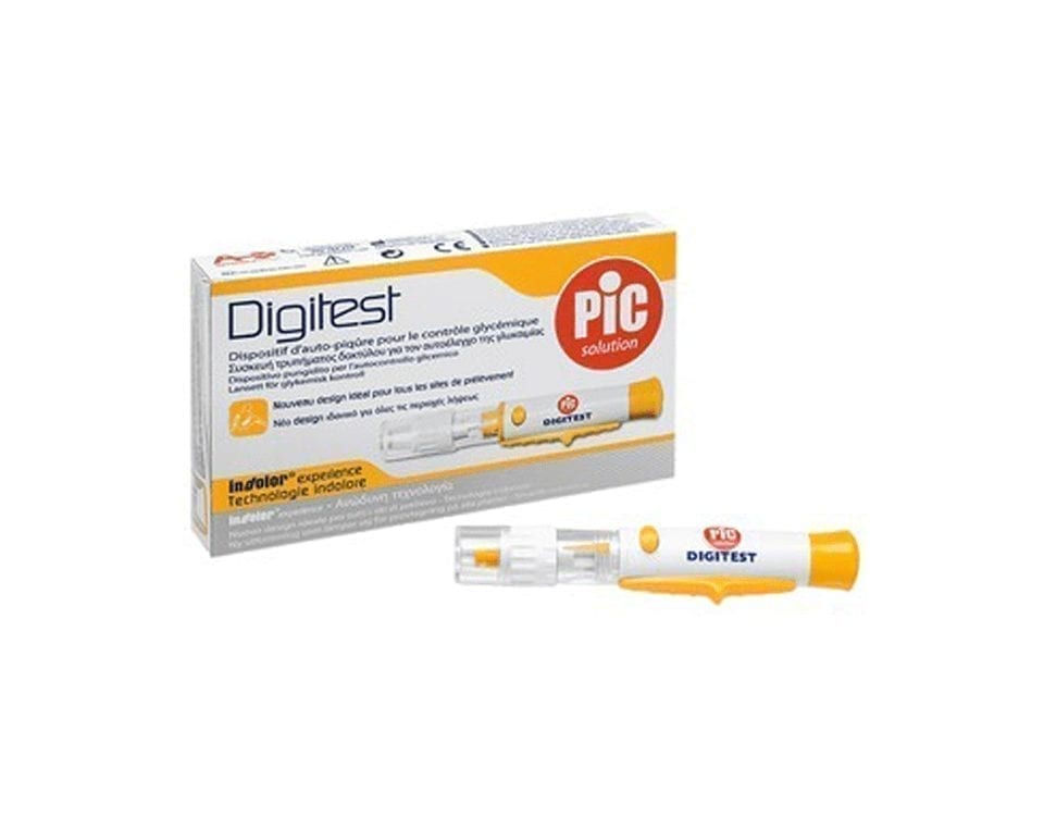 Digitest helps you check your blood glucose. Digitest is suitable for everyday use. It consists of needles for suspicion and tissues to clean the blood after drawing the sample. Finger prick pen for blood sugar testing devices from BIC Solution Digest