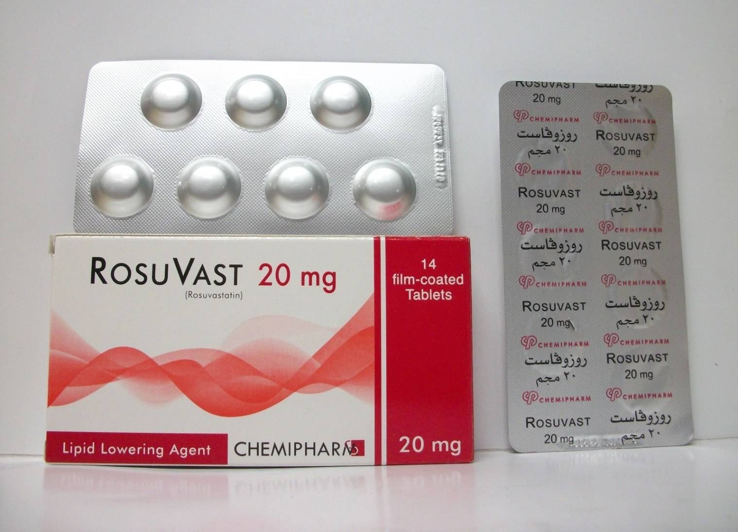 Film Coated Tablets Contain Rosuvastatin 20 mg " Antilipemic Agent, Hmg-CoA Reductase Inhibitor" Used For Familial Hypercholesterolemia To Reduce LDL-C, Total Cholesterol & Primary Prevention Of Atherosclerotic Cardiovascular Disease.