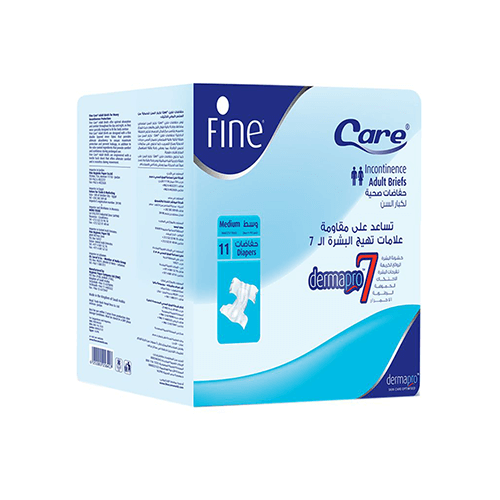 Fine Care Adult Briefs, with the patented DermaPro7 technology, offer optimal absorption and comfort throughout the day and night, as they were specially designed to fit the body contour. It is designed with a thin double-layered inner fabric that provides ultimate absorbency to ensure maximum protection and prevent leakage, in addition to the odor control ingredients that provide comfort and confidence during prolonged use. Fine Care Adult Briefs were engineered with a textile back sheet that offers ultimate comfort and is noiseless during movement