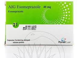 A I G ESOMEPRAZOLE 40 MG 21 TAB: This medication contains esomeprazole as an active ingredient. It is used to treat gastroesophageal reflux disease (GERD), stomach ulcers, and other conditions caused by excess stomach acid production.