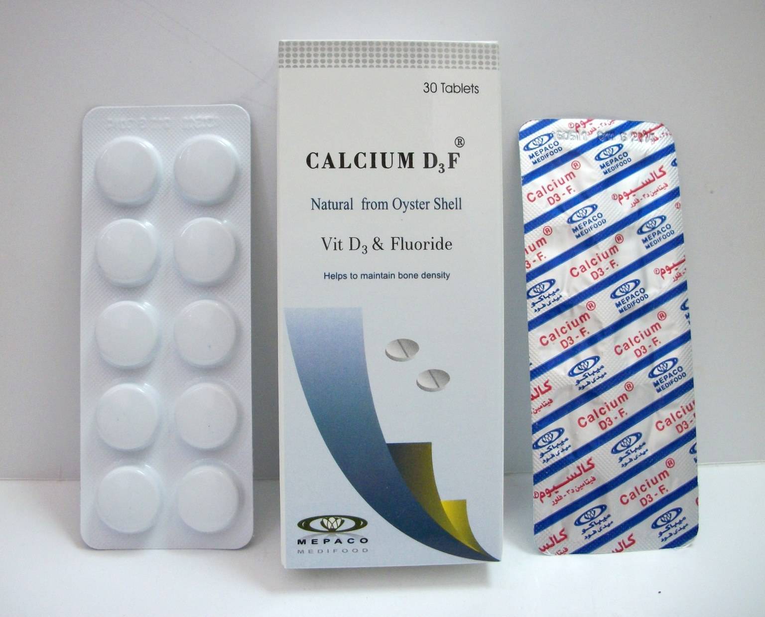 CALCIUM D3.F: A dietary supplement that contains calcium carbonate and cholecalciferol (vitamin D3) as the active ingredients.
