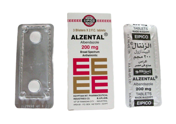 Tablets containing albendazole 200 mg used as an anthelmintic used to treat neurocysticercosis (an infection caused by pork tapeworm in the muscles, brain and eyes which may cause seizures, brain swelling and vision problems).