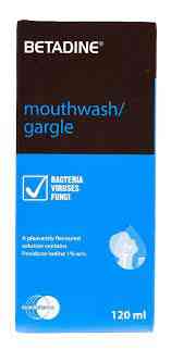 Gargling mouthwash containing povidone-iodine 1% is used in cases of infections in the mouth and throat.