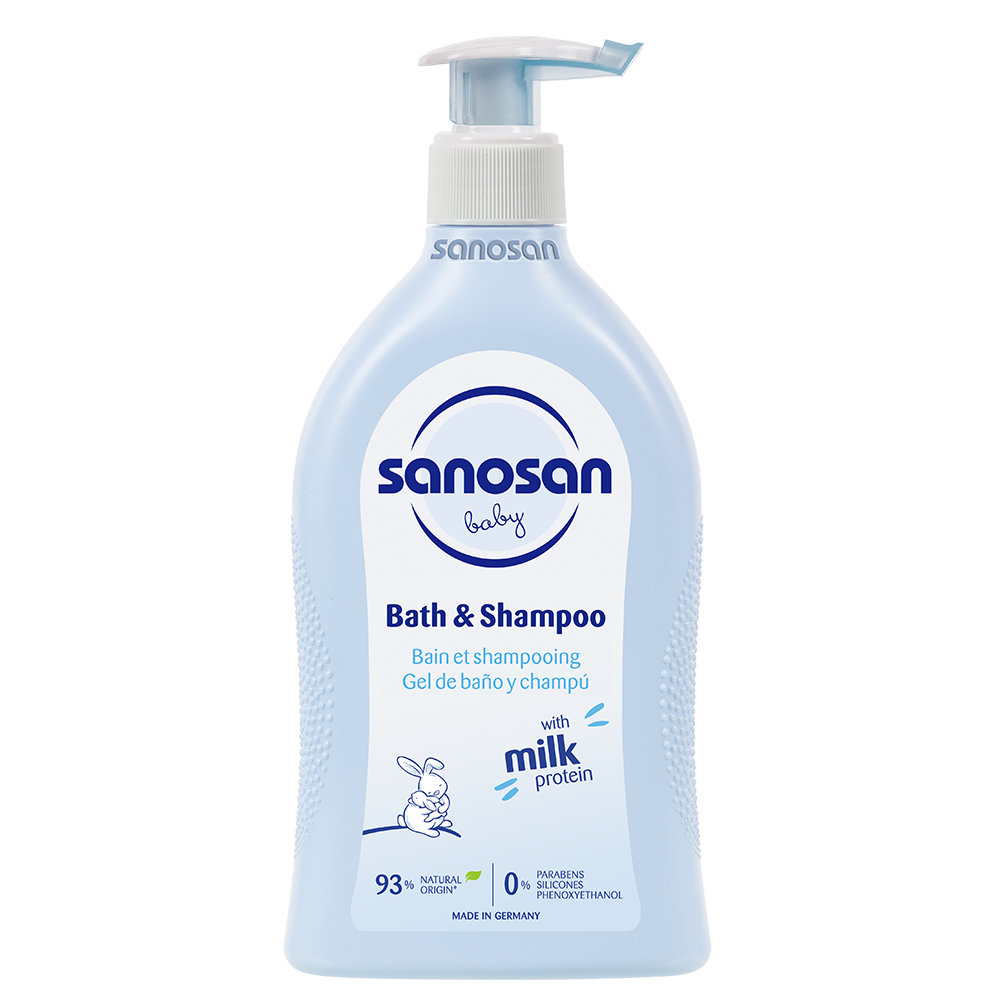 Sanosan Baby Bath & Shampoo sulfate free with no tears formula. Rich in Milk Proteins and Olive Oil, gently cleanses hair and skin without causing dryness. Safe for babies from day 1 after birth.