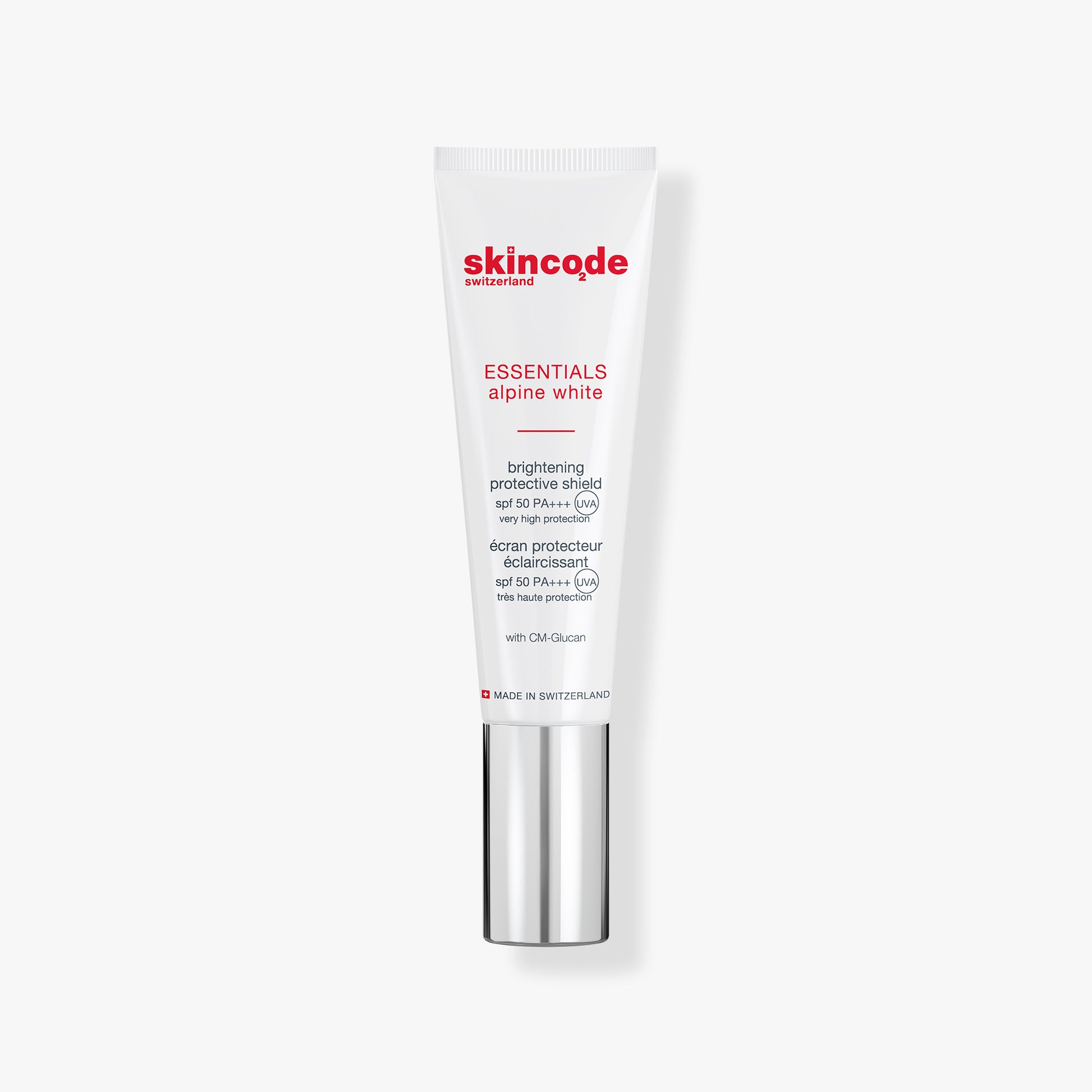 This ultra-light fluid provides highly effective protection against harmful UVA, UVB and environmental aggressors while at the same time providing a brightening effect to reveal a hydrated, protected and more even skin tone. Brightening Shield SPF 50/PA +++ contains UVA and UVB filters to protect the skin from sun exposure and signs of premature aging. Formulated with the healing, soothing and rejuvenating properties of CM-Glucan, plus brightening Niacinamide, also known as Vitamin B3, and a complex derived from alpine plants to treat problem areas showing signs of pigmentation and other blemishes.